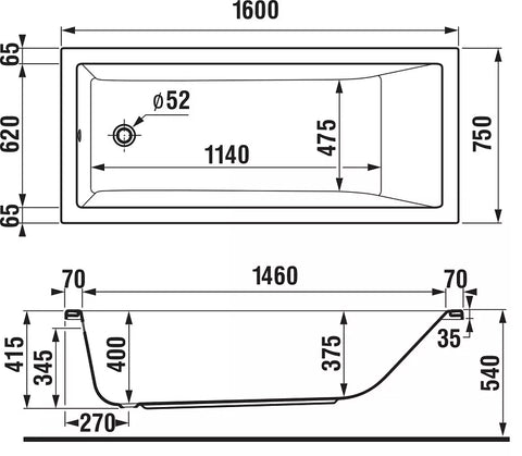 Jika Cubito vonia 160 × 75 cm, be kojelių, 201 l