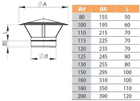 Kibirkščių gaudiklis - deflektorius NP (juoda struktūrinė sp.) d.200