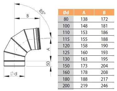 SW alkūnė NP d.200 85° (120 1 2002 0200 085)