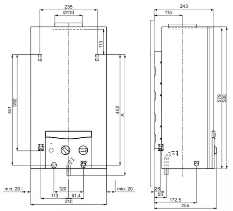 *Dujinė karšto vandens šildymo kolonėlė Vaillant MAG mini 114/1 Z (P-INT) (suskystintos d., piezo uždegimas)
