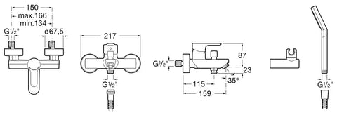 L20 vonios/dušo maišytuvas su perjungėju, su rankiniu dušu, 1,7 m. žarna ir reg. laikikliu, chromas