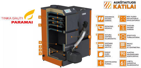 Granulinis katilas PELLET UNI 26 kW su rotac. 26 kW degikliu, sraigtu, 230 l met. bunkeriu