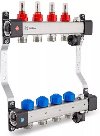 Grindinio šildymo kolekt. su debit. ir pav.vožtuvais KAN-therm InoxFlow UFS-9; žiedų sk. 9; ilgis 490 mm