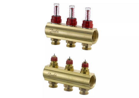 Žalvarinis šildymo kolektorius Danfoss, reguliuojamas su srauto matuokliais, FHF-F 3 žiedų