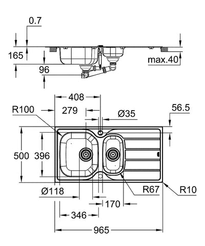Grohe nerūdijančio plieno plautuvė K200, 96,5 x 50 cm, su nuvarvinimo dubeniu