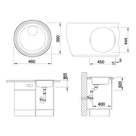 Plautuvė BLANCORONDOSOL, 460x390mm, plieninė matinė