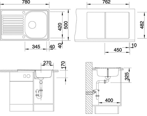 Plautuvė BLANCOTIPO 45S Compact, 780x500, nerūdijantis plienas, matinė