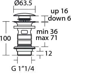 Ideal Standard Click - Clack dugno vožtuvas 1 1/4” (32 mm) be persipylimo, matinė juoda