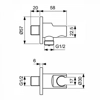 Ideal Standard dušo žarnos pajungimo alkūnė su laikikliu, chromas