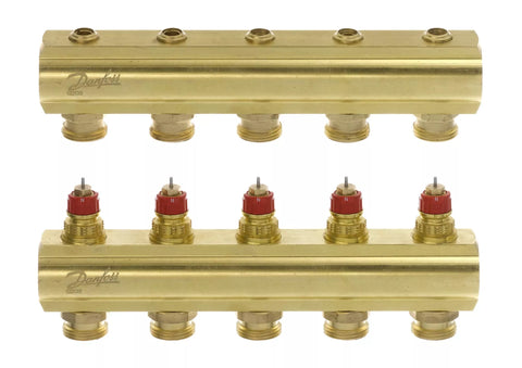 Žalvarinis šildymo kolektorius Danfoss, reguliuojamas su išankstiniu nustatymu, FHF 5 žiedų