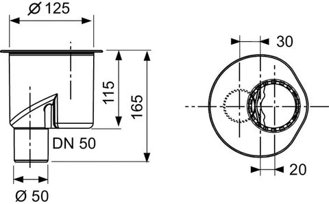 TECEdrainline plokščias sifonas, DN 50 horizontalus; montavimo H 95 mm; pralaidumas 0,73 l/s
