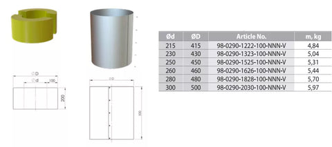 Kevalas perėjimui per perdangą s-100mm, h-200mm su gaubtu L-500, skirtas d.180/280