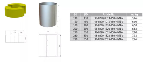 Kevalas perėjimui per perdangą s-150mm, h-200mm su gaubtu L-500, skirtas d.200/250