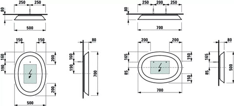 Veidrodis su LED apšvietimu Ravak Oblong I, 600x700