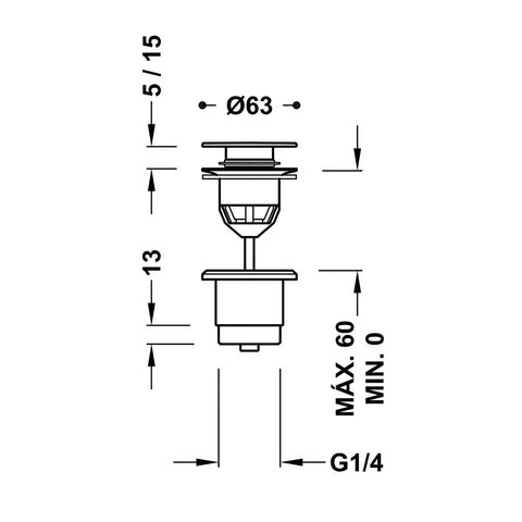 Dugno vožtuvas Tres Click-Clack, Ø63 mm, auksas matinis