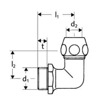 Alkūnė DN1/2" x Ø 10 Schell, išorinis pajungimas, su veržle