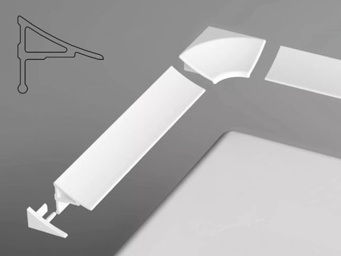 Apdailos juostelė 11 užpildo iki 11 mm tarpą. Galima pritaikyti atskirai užsakomą rinkinį, kurį sudaro: 2 apdailos juostelių kampukai ir 2 sujungimo kampukai. |
