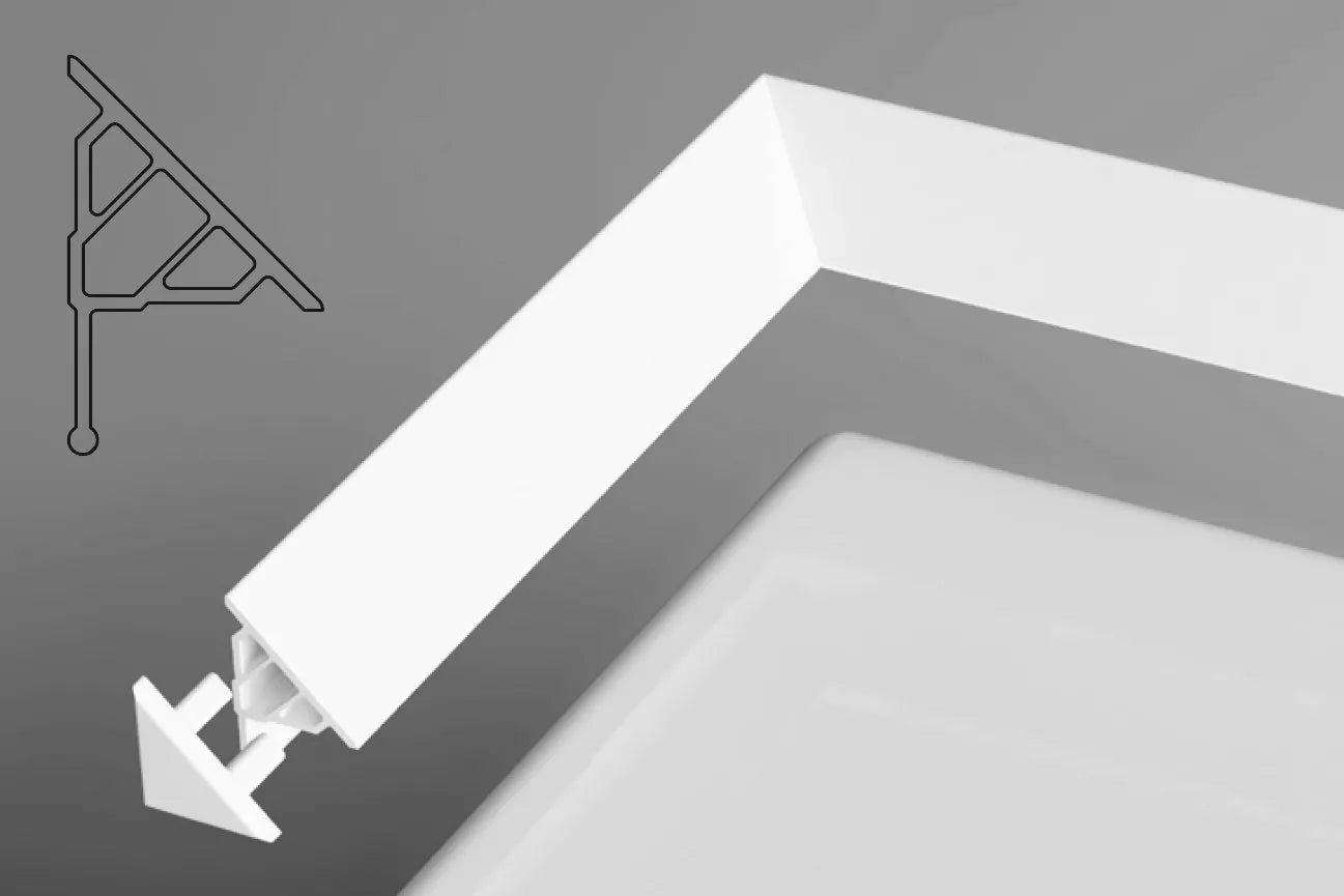 Apdailos juostelė 6 užpildo iki 6 mm tarp. Galima pritaikyti atskirai užsakomą rinkinį, kurį sudaro: 2 apdailos juostelių kampukai ir 2 sujungimo kampukai. |