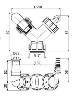 Atšaka skalbimo mašinos ir džiovyklės pajungimui (G1"/8–23) Alca Plast dviguba