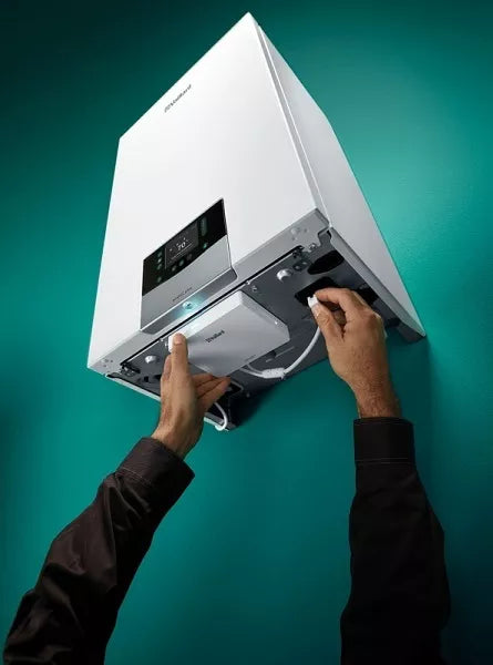 Vaillant dujinis kondensacinis katilas yra skirtas patalpų šildymui su integruota 20 litrų talpa karšto vandens ruošimui.