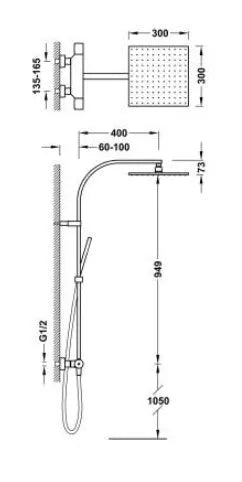 Termostatinė lietaus dušo sistema ESTETA su rankiniu dušu, chromas