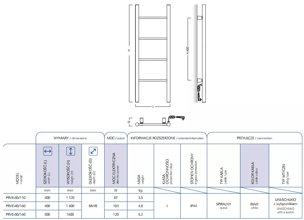 Elektrinis gyvatukas su "Šuko" kištuku ir spiraliniu laidu. Jungiamas į vienfazį elektros tinklą.
