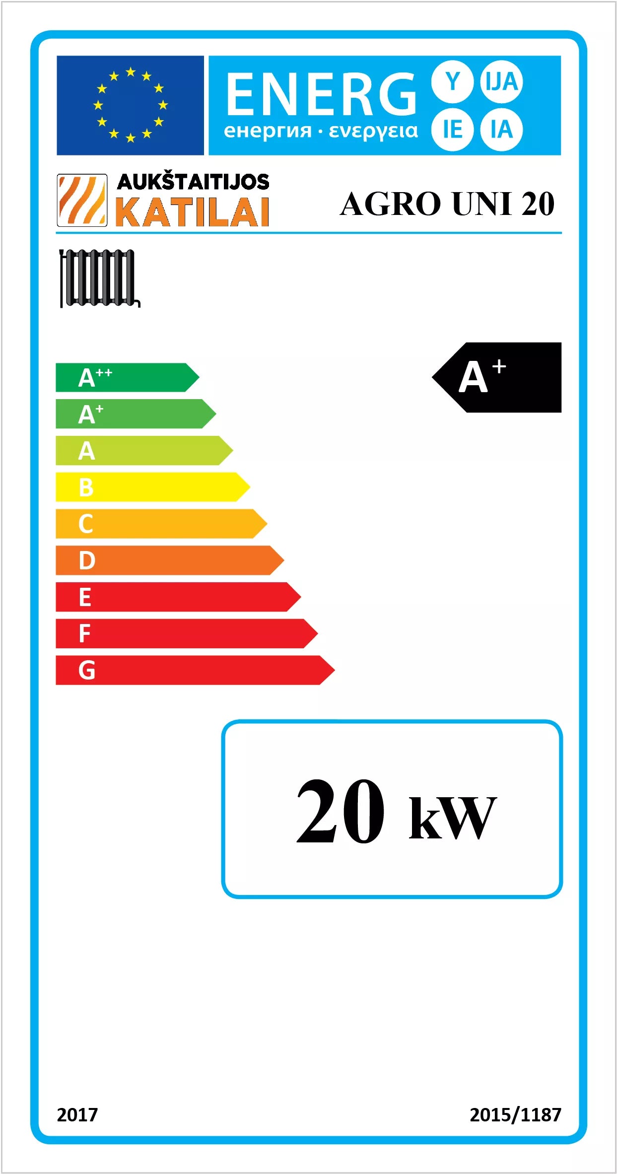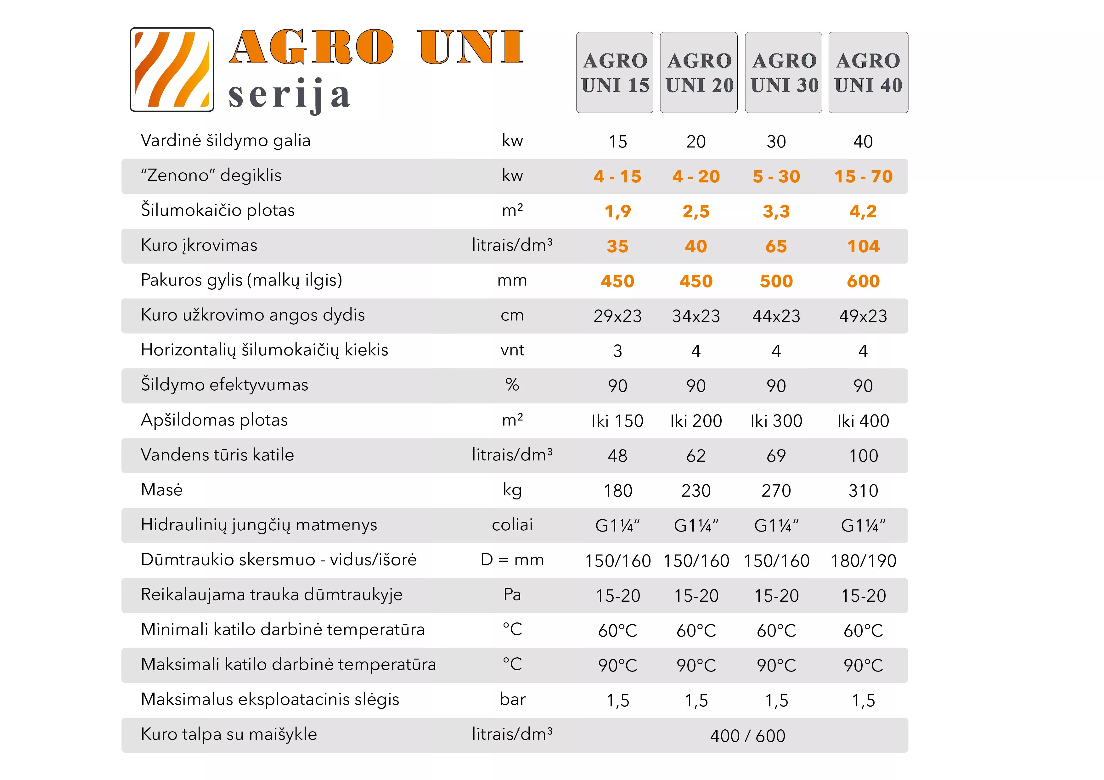 „AGRO UNI“ granulinis katilas, galintis automatiniu režimu deginti įvairias grūdines kultūras, žemės ūkio produkcijos atliekas, prastos kokybės granules ir įvairią anglį. Tai aukščiausios kategorijos ir techninio lygio gaminys, specialiai sukonstruotas tokio kuro deginimui.