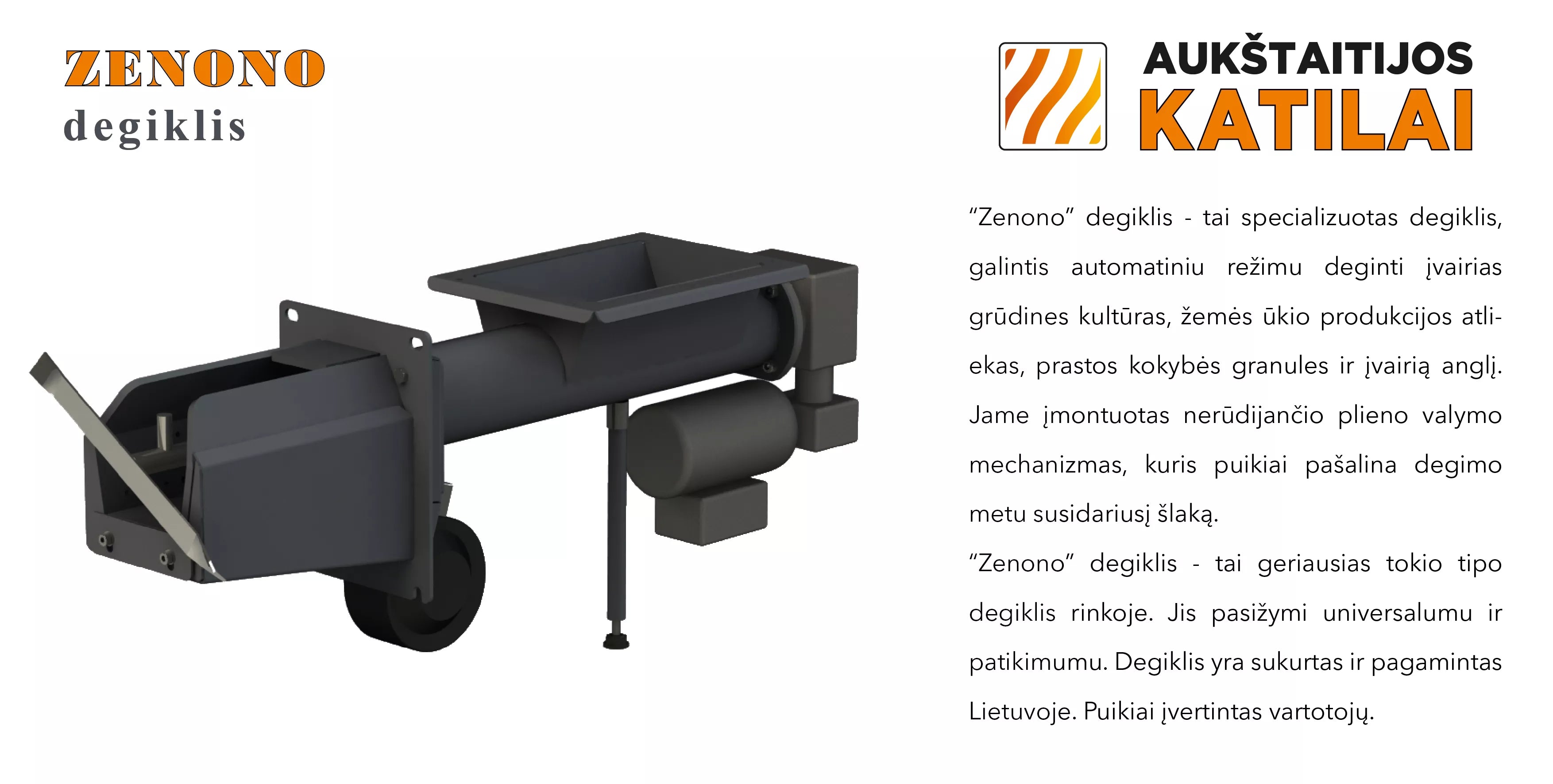 Garsusis “ZENONO” degiklis yra sukurtas Lietuvoje ir gaminamas daugiau nei 10 metų. Dėka šlako pašalinimo mechanizmo, šis degiklis išsivalo savaime.
