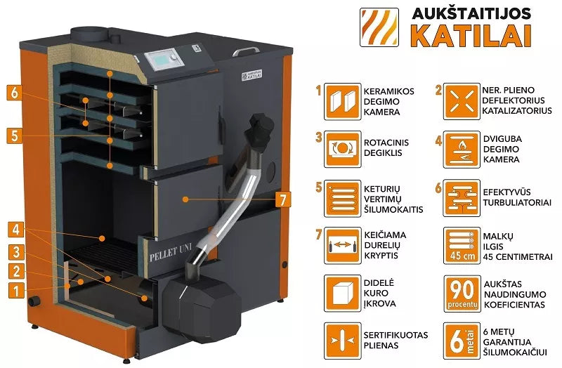 • tinkamas kuras: medienos granulės, kaip alternatyvus kuras gali būti naudojamos malkos, briketai, anglys;