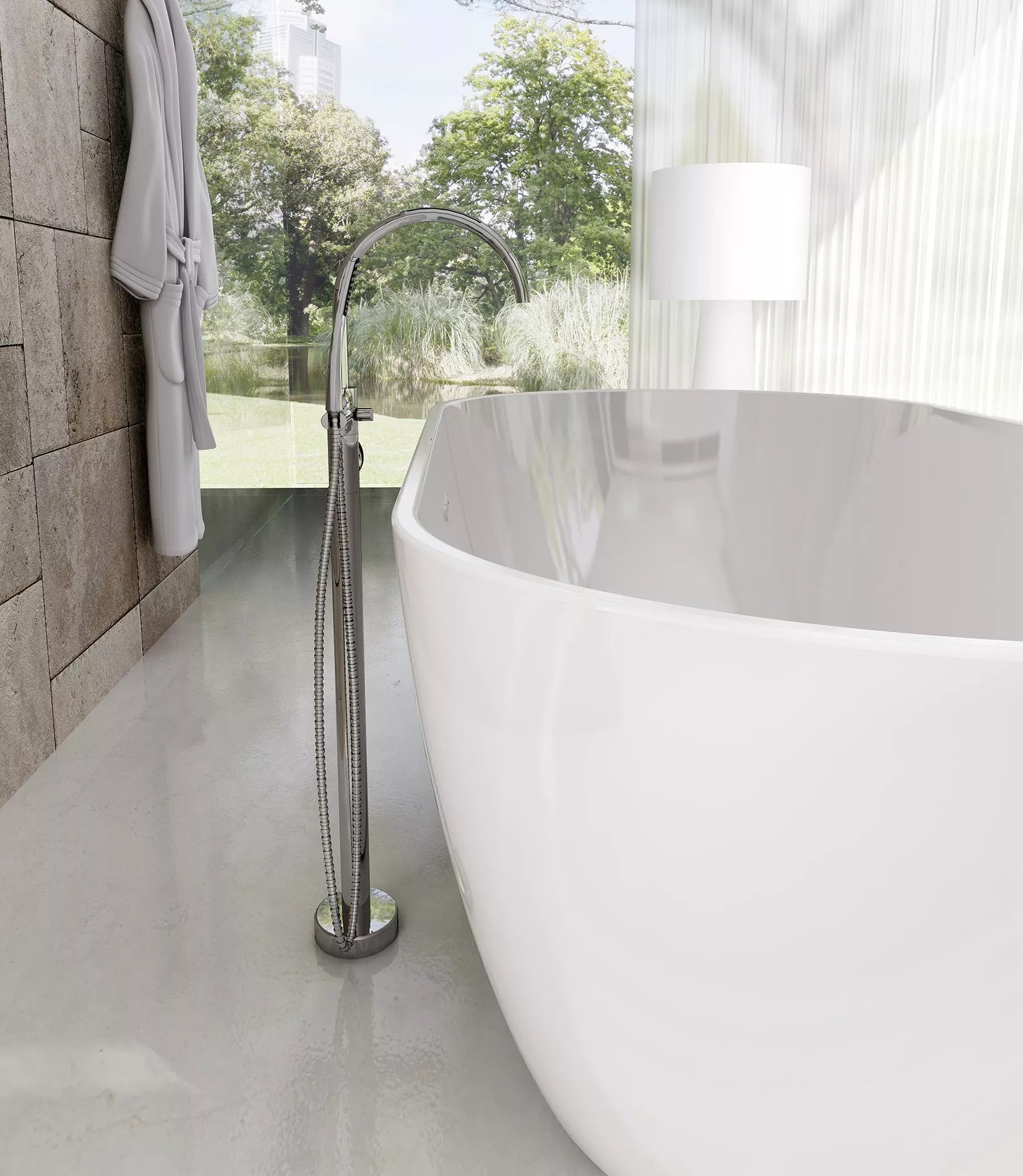 Grindų maišytuvas suteikia jums šimtaprocentinę laisvę. Jūs nusprendžiate, kur pastatyti savo vonią. Ir jūs taip pat nuspręsite, kur įmontuoti užpildymą. |