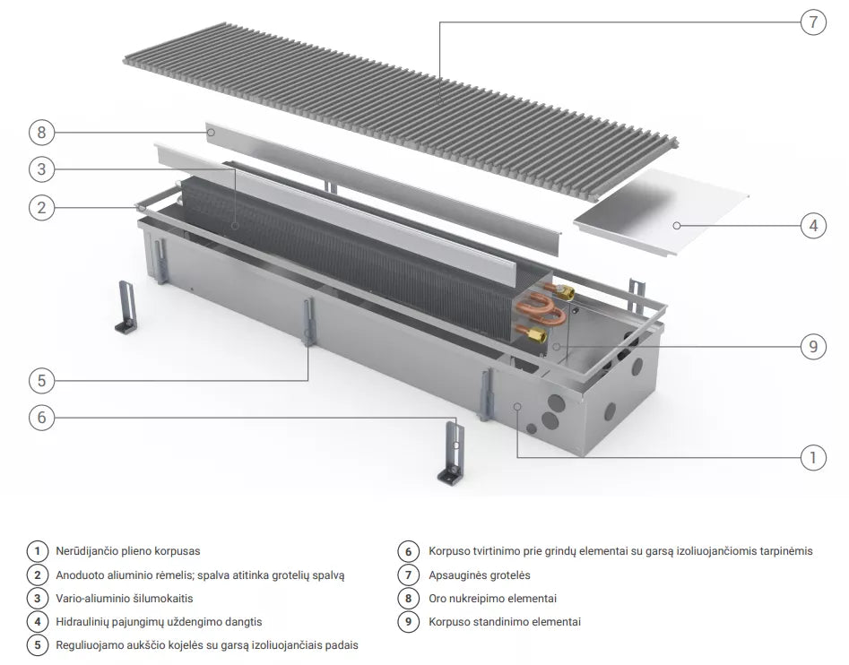 Įleidžiamas grindinis konvektorius FC 100x22x9