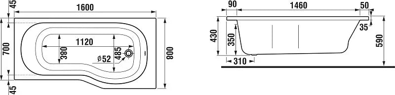 • ergonomiška Tigo serijos vonia yra 80 cm pločio dušo zonoje, o likusi dalis yra siauresnė 10 centimetrų, todėl ji gražiai telpa į mažesnius vonios kambarius;