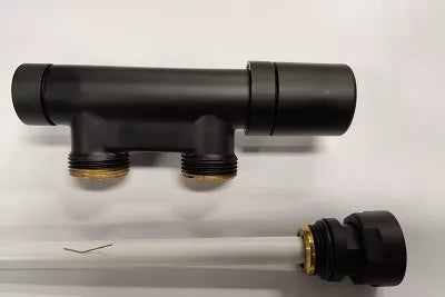 Kampinis mazgas gyvatukui, vienvamzdei/dvivamzdei sistemai, 1/2, 3/4EK, 50 mm juoda matinė
