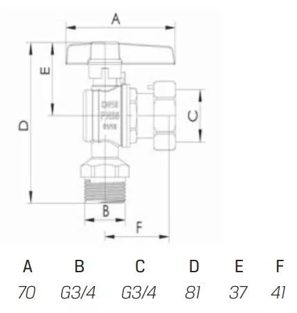 Kampinis ventilis 3/4" i/v, su laisva veržle DK