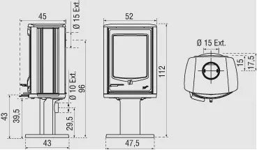 Oras degimui paduodamas iš lauko ar šalia esančios patalpos. Tokiu būdu krosnelės patalpoje oras visada išlieka šviežias. Jungties skersmuo 10 cm.