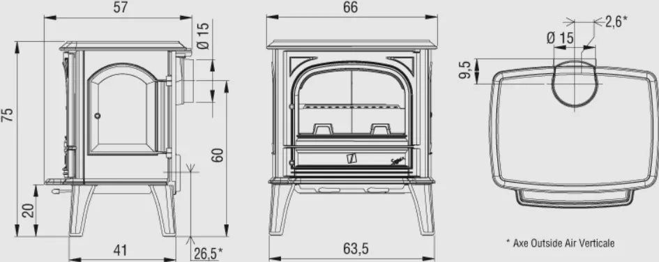 Oras degimui paduodamas iš lauko ar šalia esančios patalpos. Tokiu būdu krosnelės patalpoje oras visada išlieka šviežias. Jungties skermsuo 100 mm.