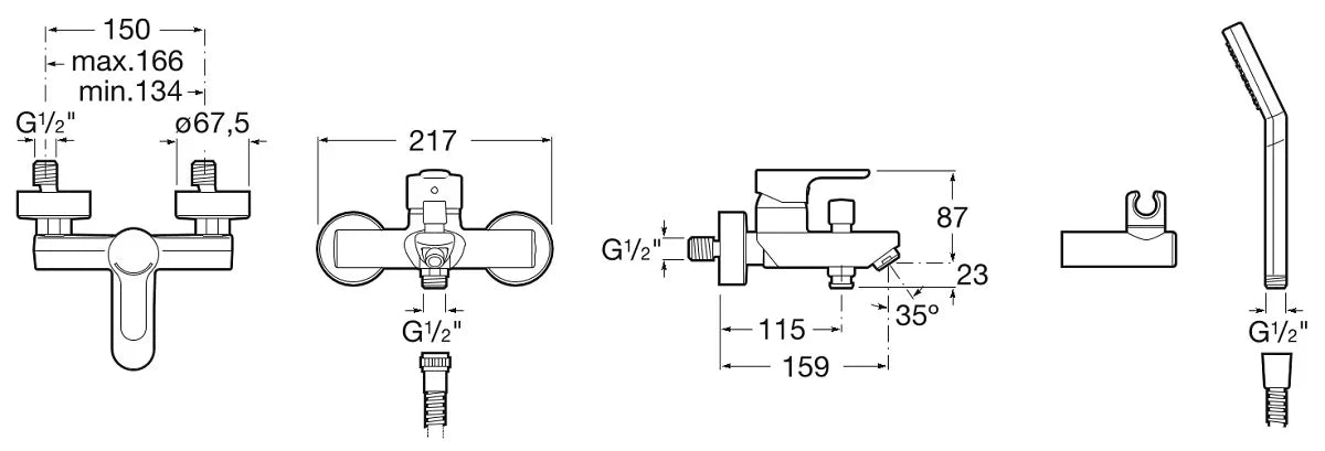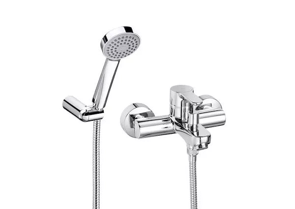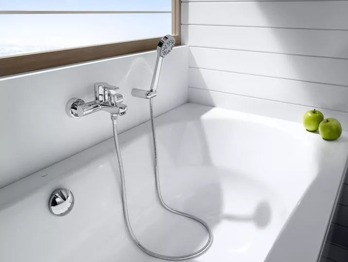 Sieninis vonios / dušo maišytuvas su automatiniu perjungėju, 1,70 m lanksti dušo žarna, rankinis dušas ir reguliuojamas sieninis laikiklis.