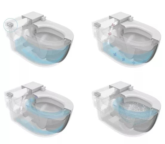 • unitazas, kuriam nereikia bakelio - vanduo nuplovimui kaupiamas keraminio unitazo korpuse;
