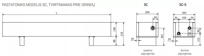 Pastatomas konvektorius SC 90x20x13 (aukštis 21,5 cm su kojele)