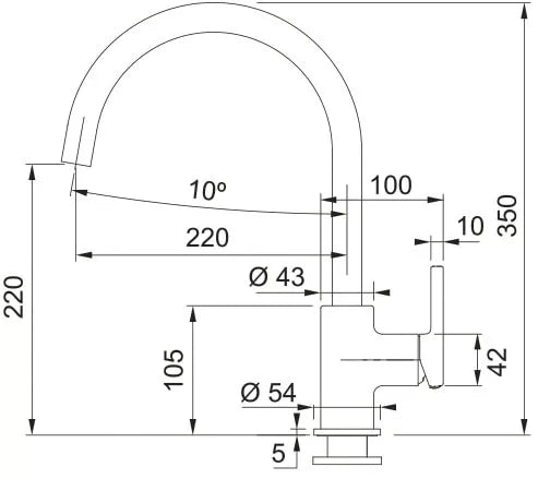 Maišytuvo aukštis – 350 mm, snapelis yra fiksuotas ir sukasi 360°, todėl tinka naudoti tiek su vienguba, tiek su dviguba plautuve. Montavimo anga – 35 mm.