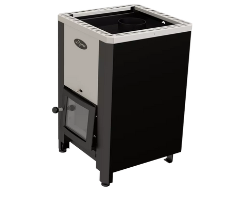 • kūrenama malkomis ar medienos briketais;
