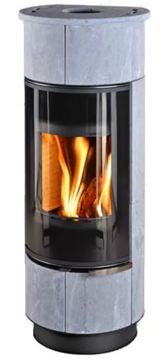 Krosnelė su akmens apdaila, kuris maloniai kaista viso kūrenimo metu iki saugios lietimui temperatūros.