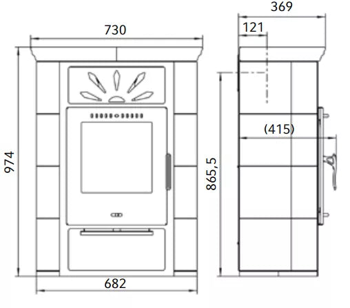 • pakura išklota šamoto plytomis, kurios apsaugo ją nuo tiesioginės ugnies;