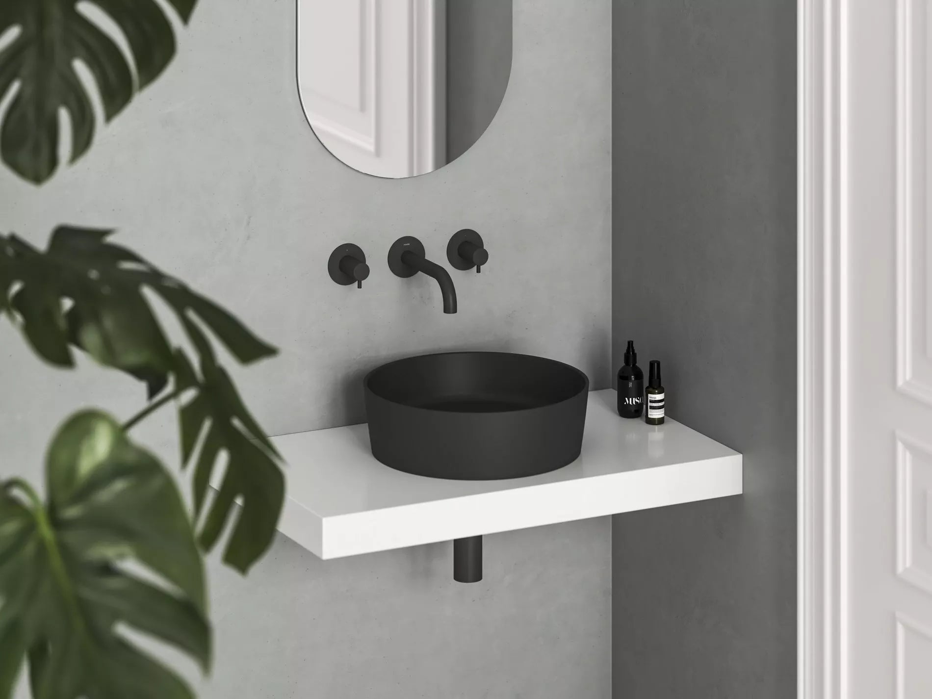 matmenys: Ø 400 mm, aukštis 120 mm medžiaga: keramika spalva: juoda matinėinė perpildymas: ne priedai: plokštė / spintelė, fiksuota praustuvo sifono galvutė, praustuvo chromuotas arba baldinis sifonas, aukštas vandens maišytuvas Chrome arba 10°