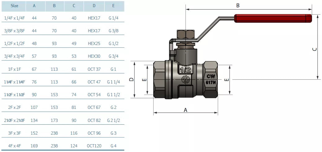 TURIA 3000 ventilis 1" v/i trumpa rankena (0113208)