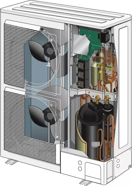 • dvigubo rotoriaus inverterinis kompresorius, nominali galia 13kW;