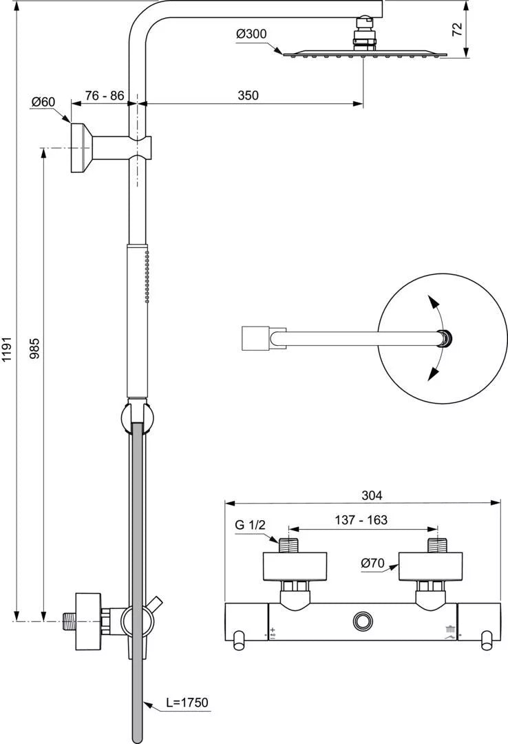 Tai ant sienos montuojamos dušo sistemos su dviem dušo galvomis - stacionaria ir rankine. Didelės stacionario dušo galvos suteikia komforto maudantis duše. Tuo pačiu jos ir taupios - nuo 9,5 l/min. Stacionarios dušo sistemos Ideal Standard komplektuojamos su termostatiniais maišytuvais. |