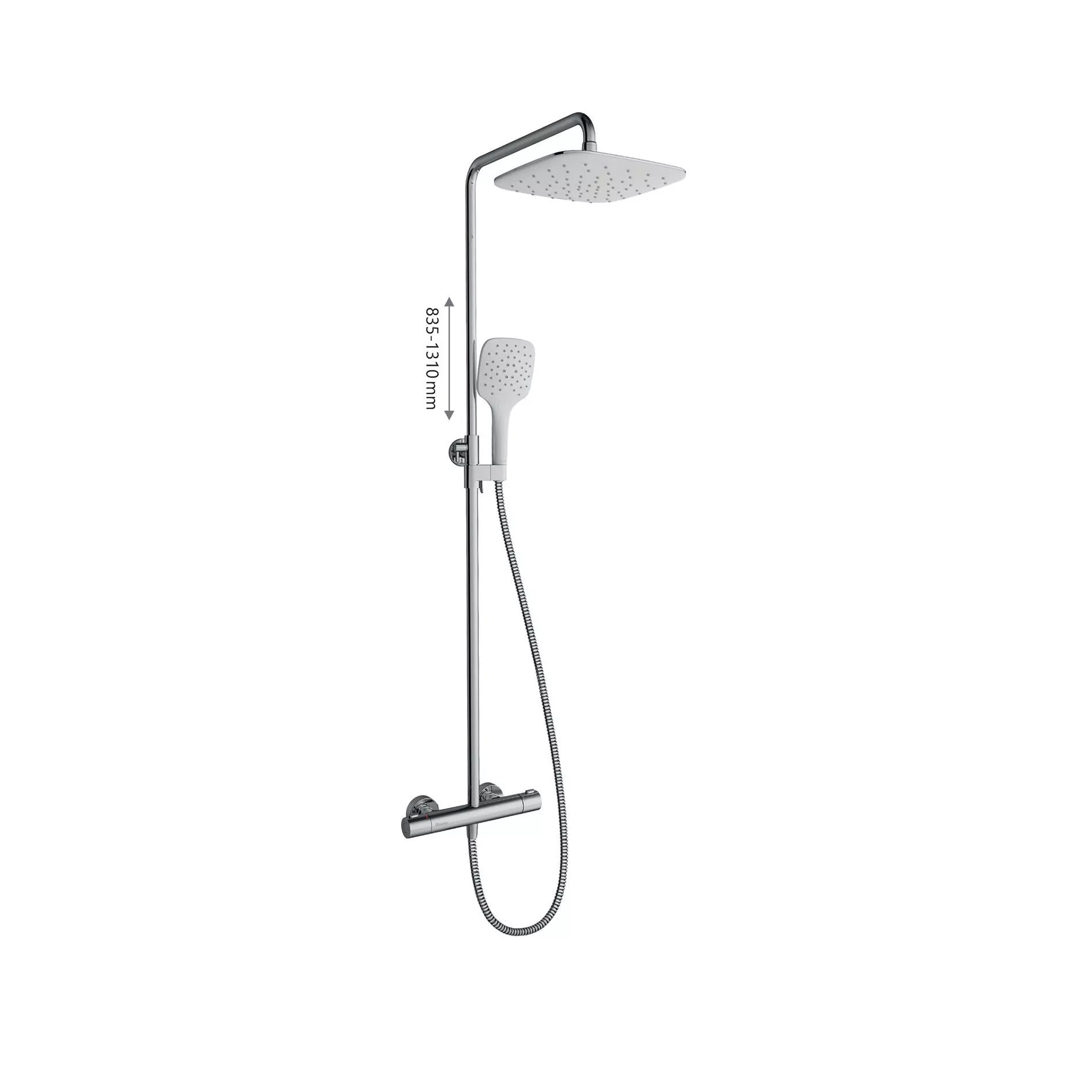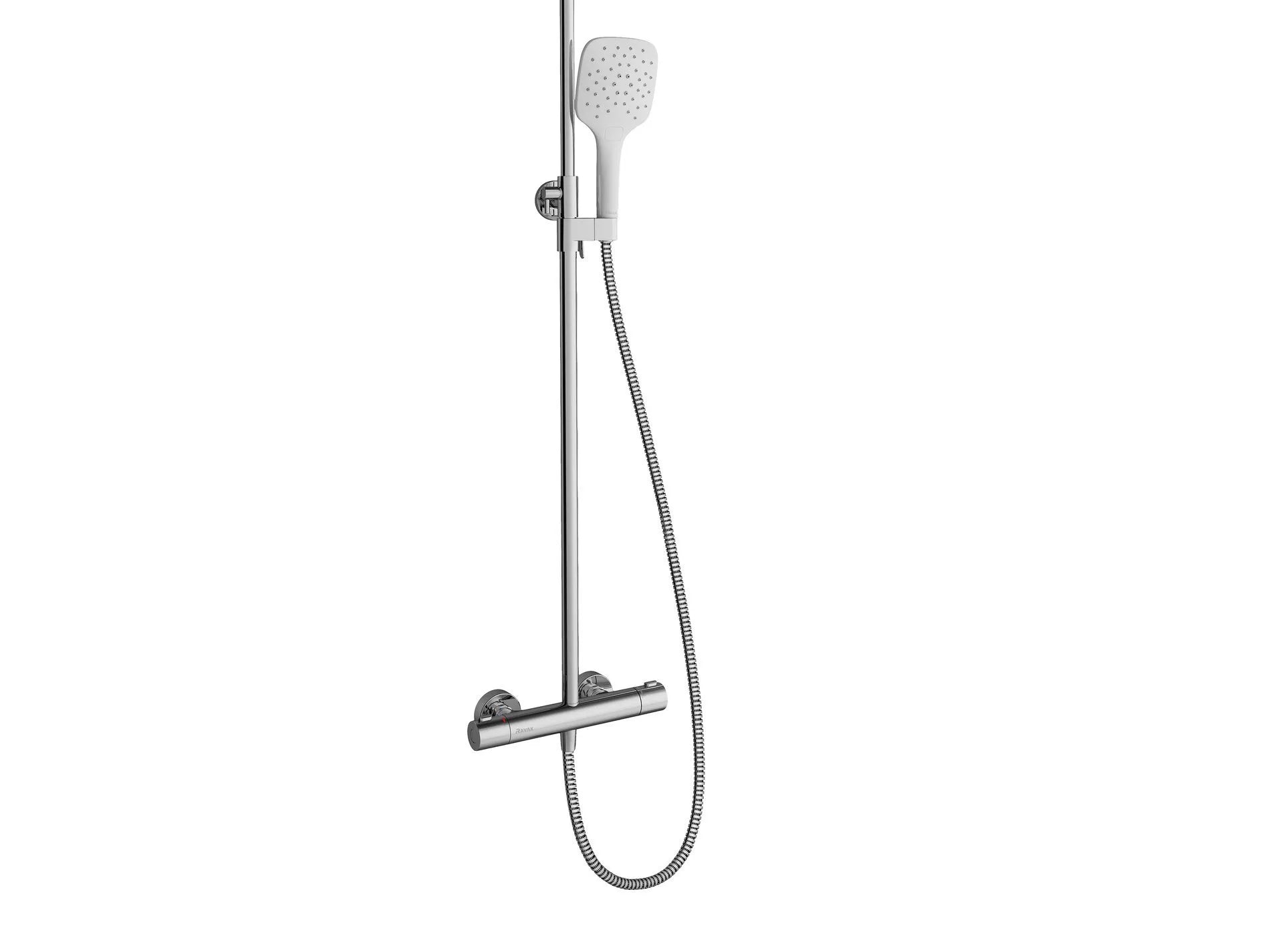 terminio stulpelio aukštis: lankstus - reguliavimas 84-131 cm diapazone kasetė: termostatinė vandens temperatūros kontrolė valdymas: temperatūros valdymas kairėje - CoolFeel dizainas: kvadratinis ABS dušas 25 cm; rankinis dušas - 3 funkcijos, viršutinį dušą taip pat galima pasukti į šonus spalva: chromas/ balta tinkamas: visoms Ravak dušo kabinoms papildomi priedai: vonios kambario priedai