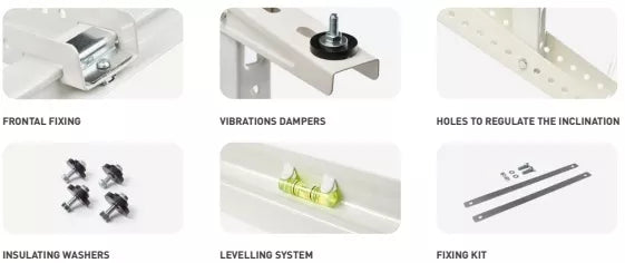 Stogo laikiklis naudojamas oro kondicionieriaus arba šilumos siurblio lauko blokui montavimui ant stogo su nuolydžiu.
