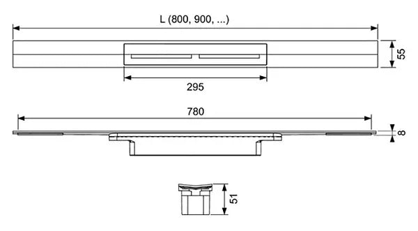 Nerūdijančio plieno pjaustomas dušo profilis su vidiniu nuolydžiu efektyvesniam vandens surinkimui ir savaiminiu išsivalymo efektu, medžiaga 1.4301 (304) Dušo profilį galima nupjauti iki ≥ 500 mm Profilio groteles galima lengvai nuimti rankomis jas paspaudus, profilis ir grotelės pagamintos iš nerūdijančio plieno, medžiaga 1.4301 (304), apkrovos klasė K3, maksimalus svoris iki 300 kg Pajungimo mova TECEdrainprofile sifonui Montavimo atrama geram sukibimui su plytelių klijais Dangos storiui nuo 8 iki 25 mm (įskaitant klijų sluoksnį) Montuojant prie sienos, dangos storis nuo 10 mm (įskaitant klijų sluoksnį) Skirta montuoti prie sienos (visiškai prispaudus) arba bet kurioje dušo patalpos vietoje.